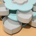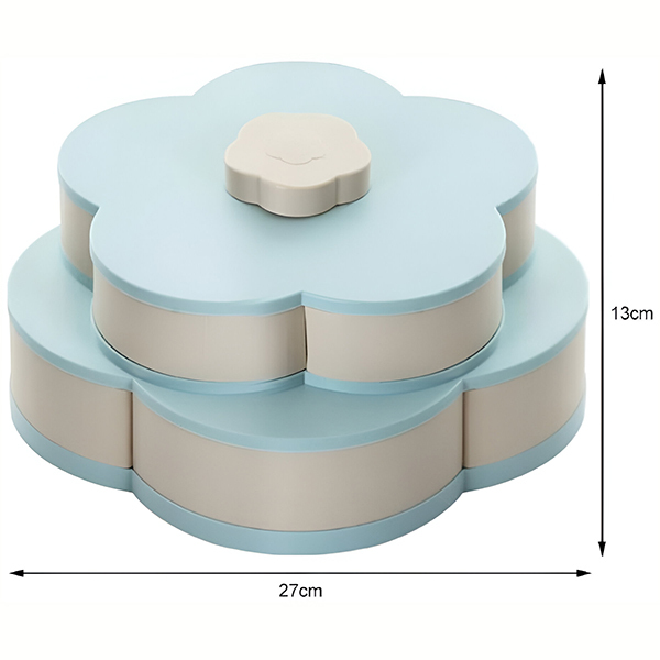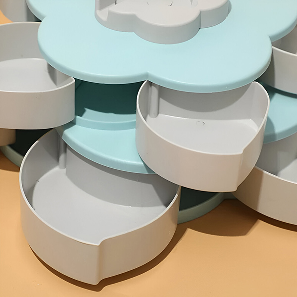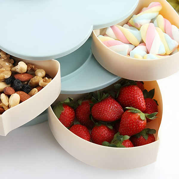 Die doppellagige Aufbewahrung, die sich wie eine Blume öffnet, macht es einfach, deine Küche zu organisieren und Platz zu sparen.