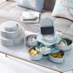 Mehrere Fächer ermöglichen die Aufbewahrung einer breiten Palette von Produkten, von Süßigkeiten, Keksen, Trockenfrüchten, Oliven, Käsestücken und anderen Snacks.