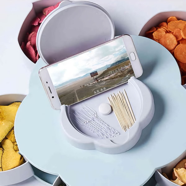 🌟 Drehe den Deckel, um Fächer für Kekse, Obst und mehr zu öffnen.