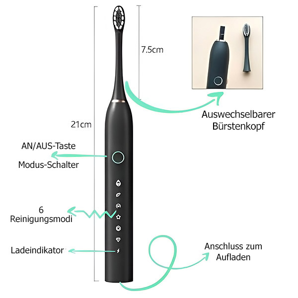 🦷 Die Möglichkeit, Ersatzbürstenköpfe zu kaufen, um eine längere Nutzungsdauer und vollständige Hygiene zu gewährleisten!