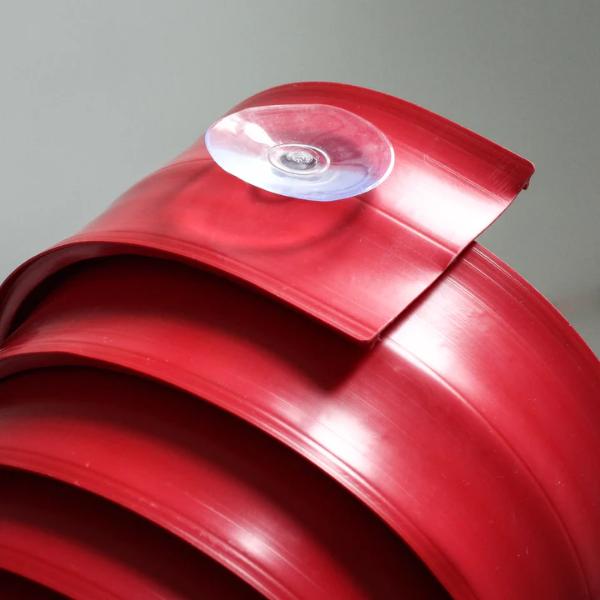 Jeder TURBORACE ist mit einem Saugnapf zur einfachen Befestigung ausgestattet – einfach an einem Glasfenster oder einer Tür anbringen, die Strecke ausrollen und losfahren.